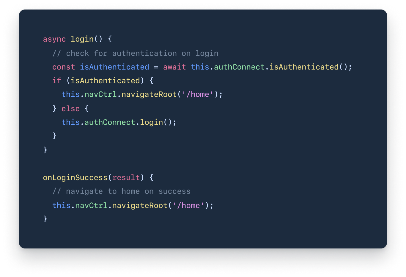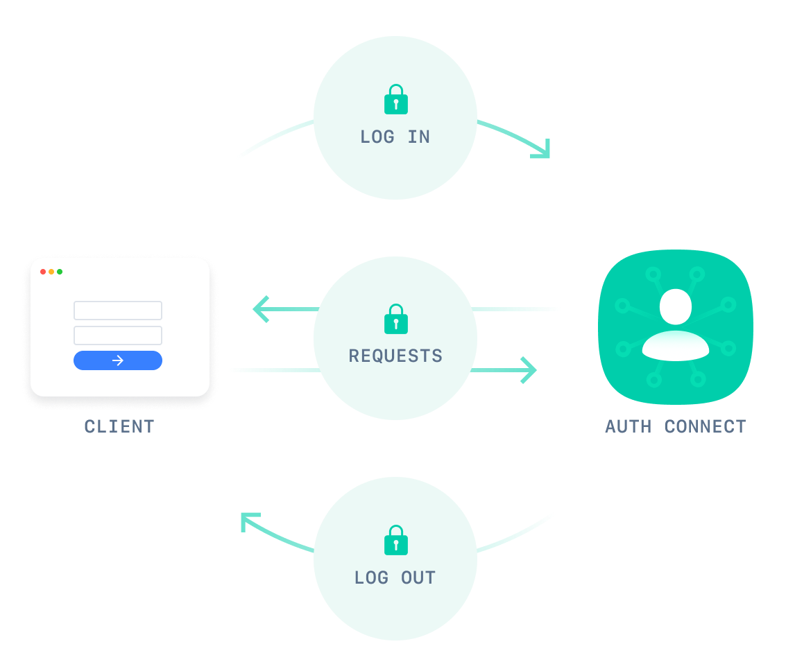 Auth Connect provides a simple interface for login, logout, registration, and retrieval of security tokens after successful login. Just enter a few basic inputs, and Auth Connect takes care of the rest.